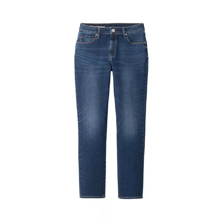 品名:女有機棉混縱橫彈性丹寧合身直筒九分褲靛藍23吋
