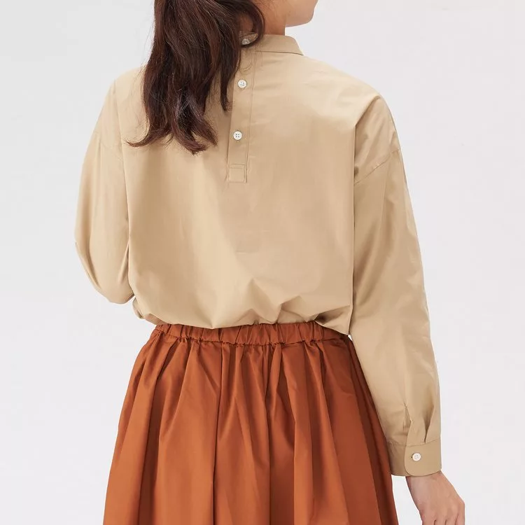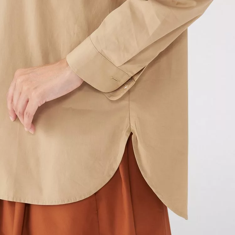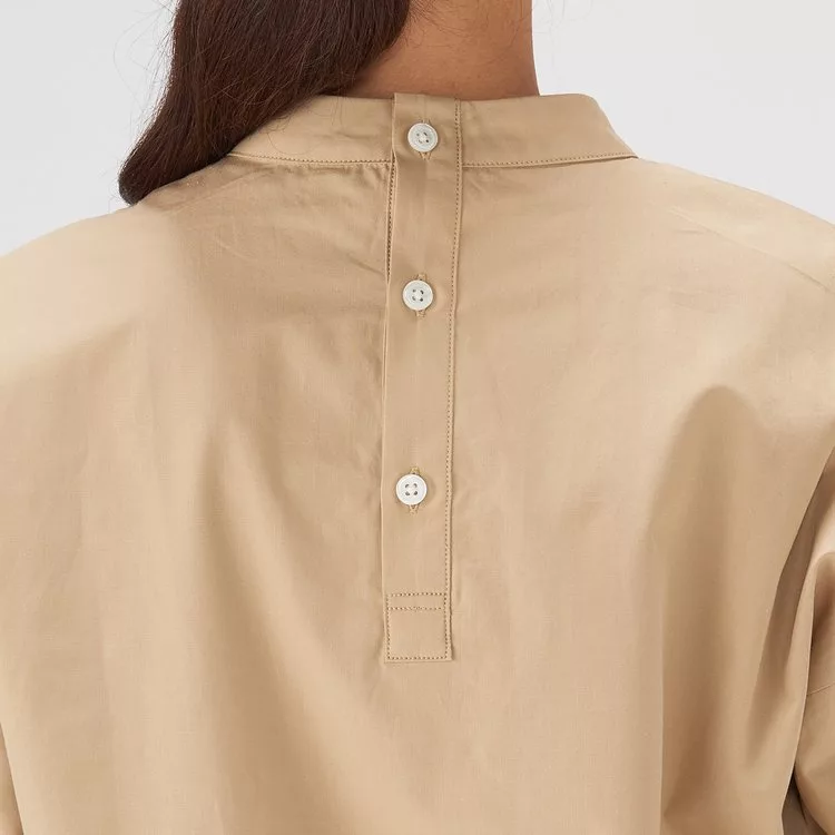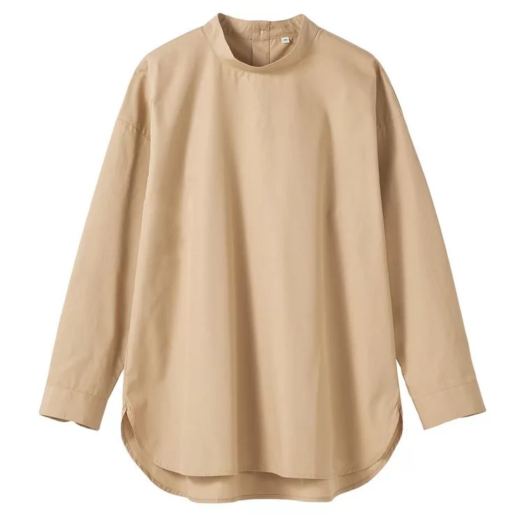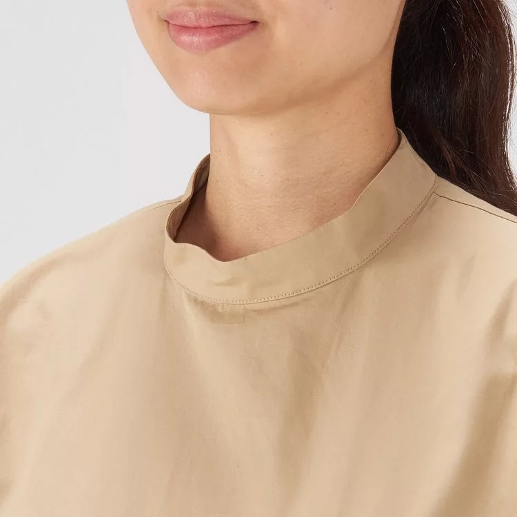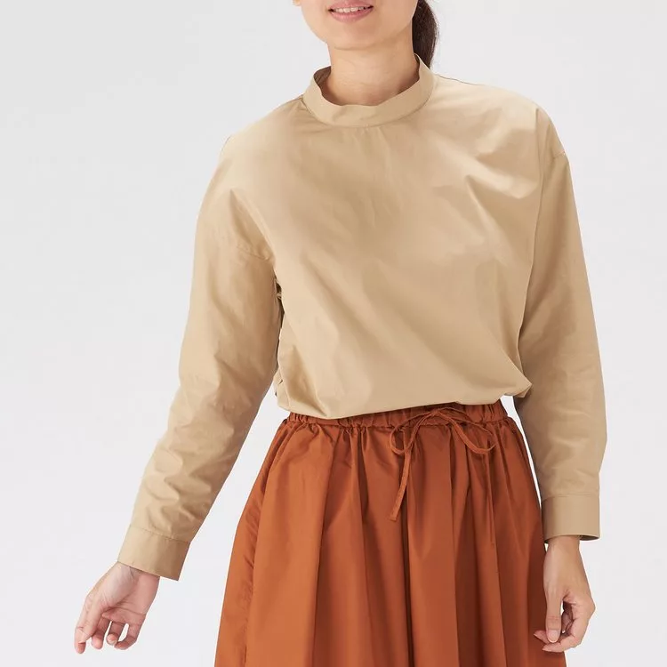 商品說明: [MUJI無印良品]女有機棉平織布立領套衫L淺米