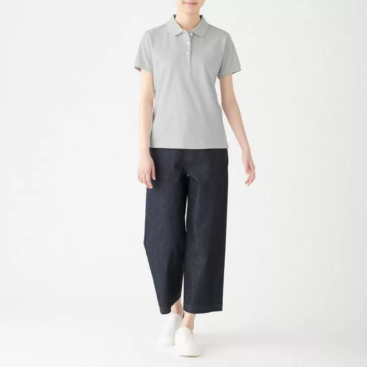 商品說明: [MUJI無印良品]女新疆棉鹿子織短袖POLO衫S淺灰