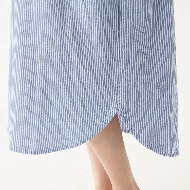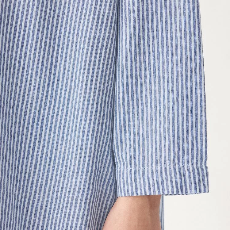 商品描述: [MUJI無印良品]女有機棉二重紗織庫塔長上衣S暗藍直紋