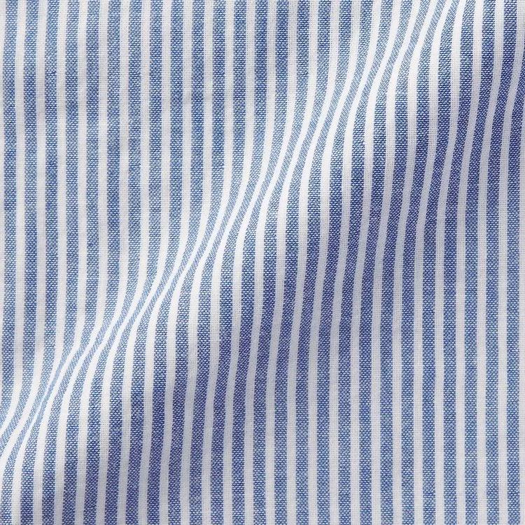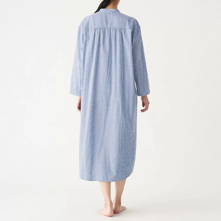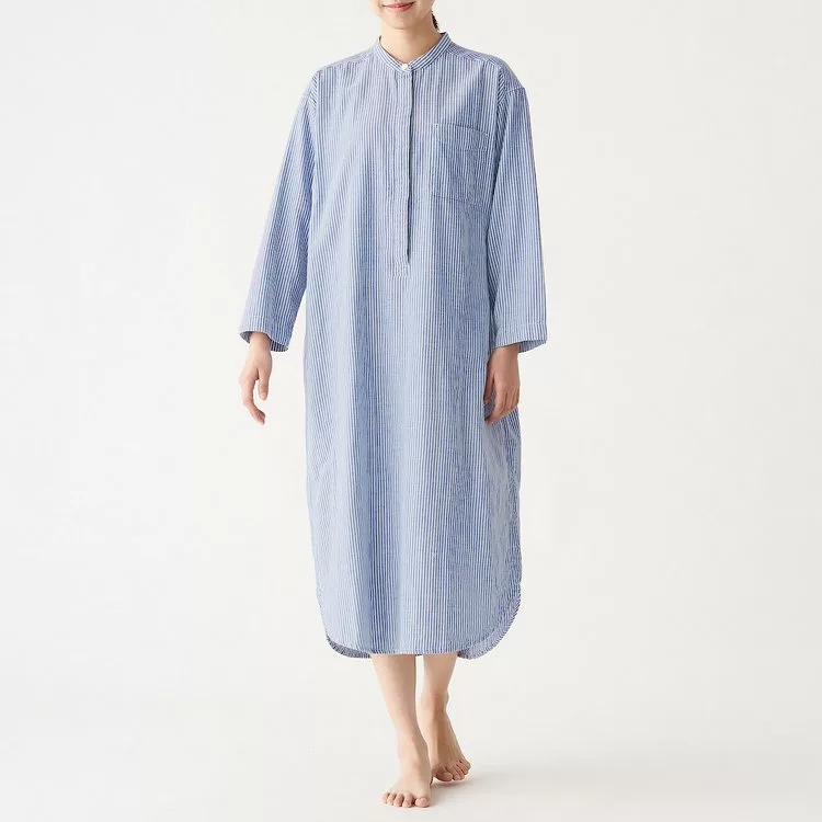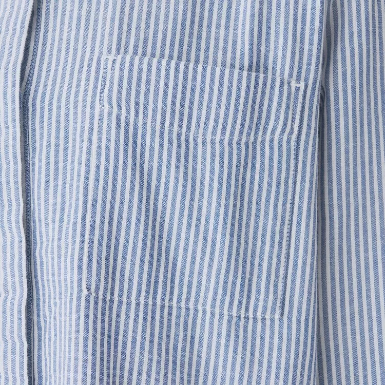 品名:女有機棉二重紗織庫塔長上衣暗藍直紋S