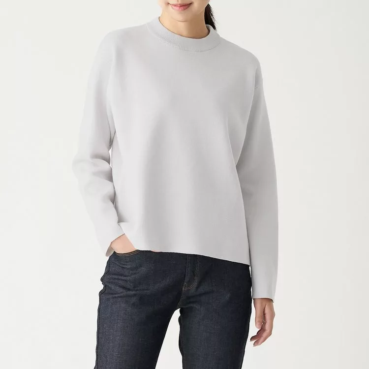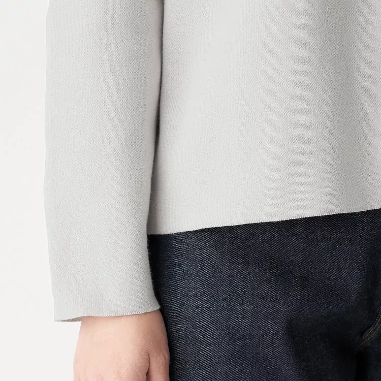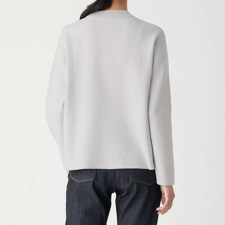 商品描述: [MUJI無印良品]女棉混雙面織圓領針織衫S灰銀