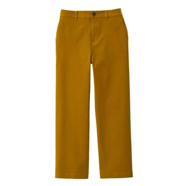品名:女有機棉混縱橫彈性綾織舒適寬擺褲深米S