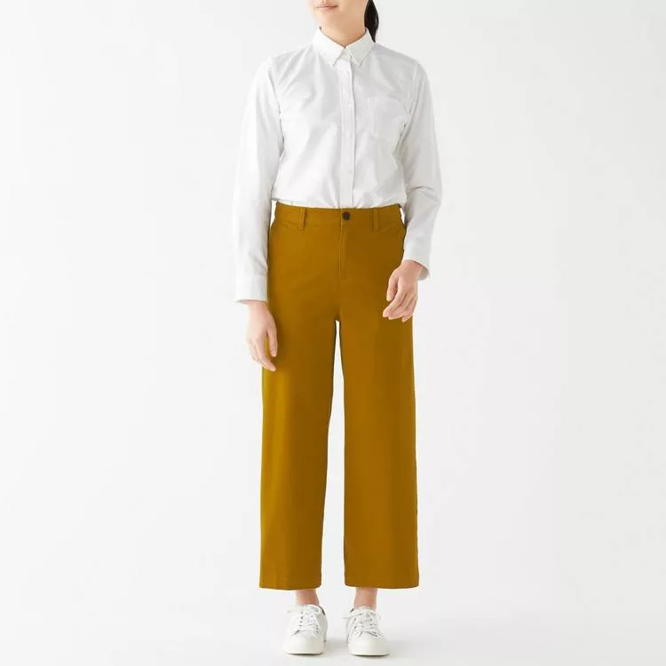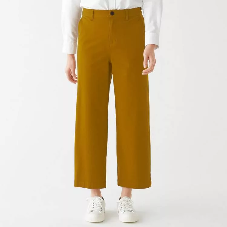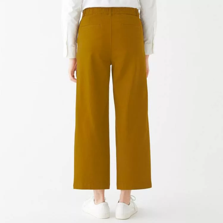 商品描述: [MUJI無印良品]女有機棉混縱橫彈性綾織舒適寬擺褲S深米