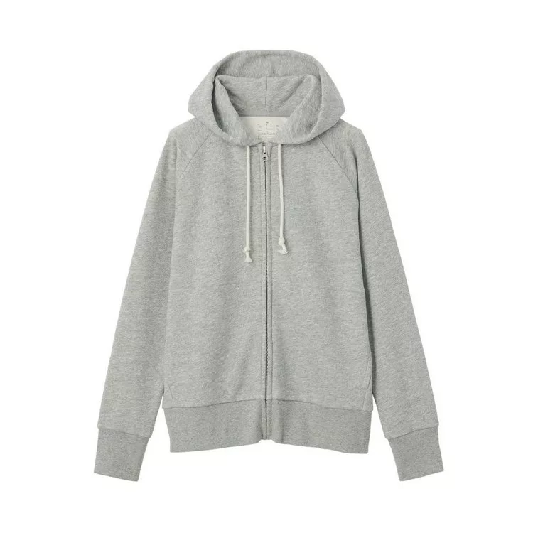 商品描述: [MUJI無印良品]女棉混節紗裏毛拉鍊連帽外套S淺灰