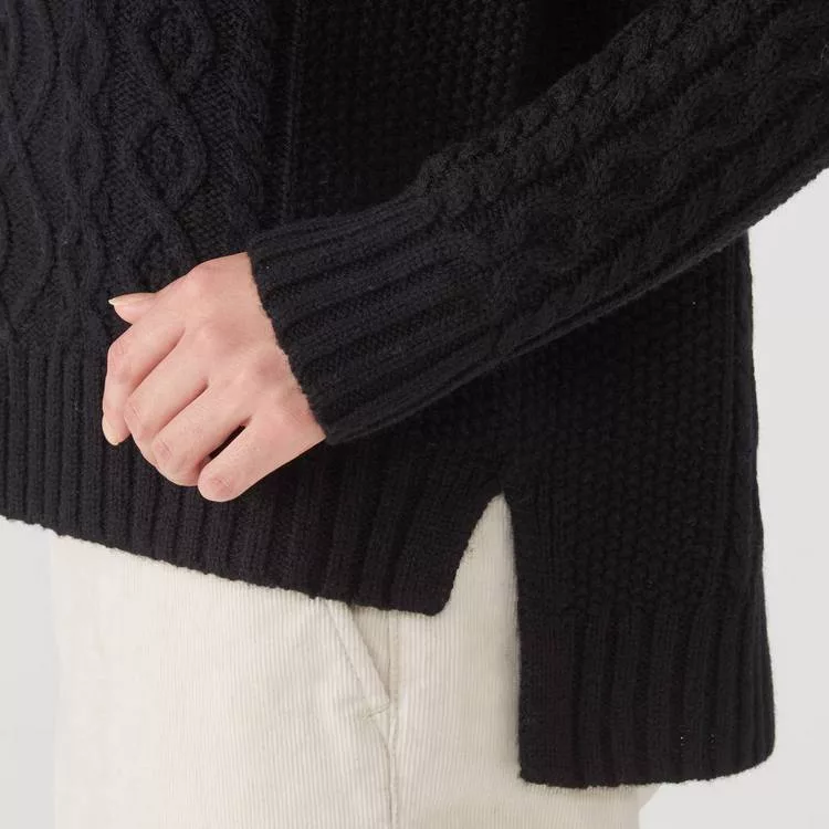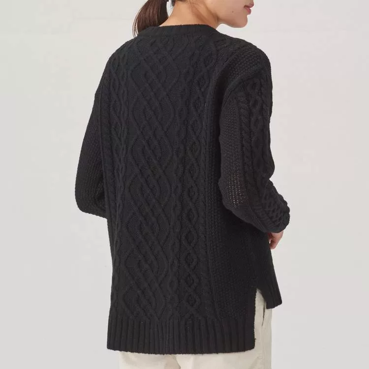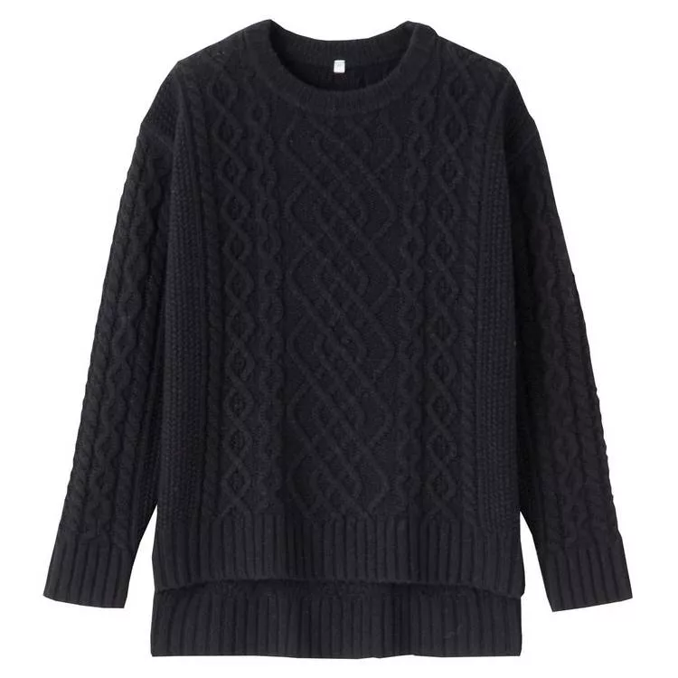 品名:女氂牛毛混羊毛織紋針織衫黑色S