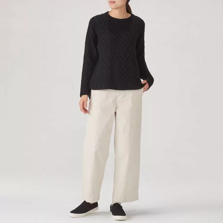 商品說明: [MUJI無印良品]女氂牛毛混羊毛織紋針織衫S黑色
