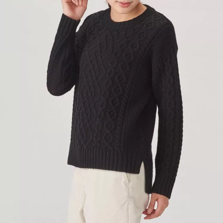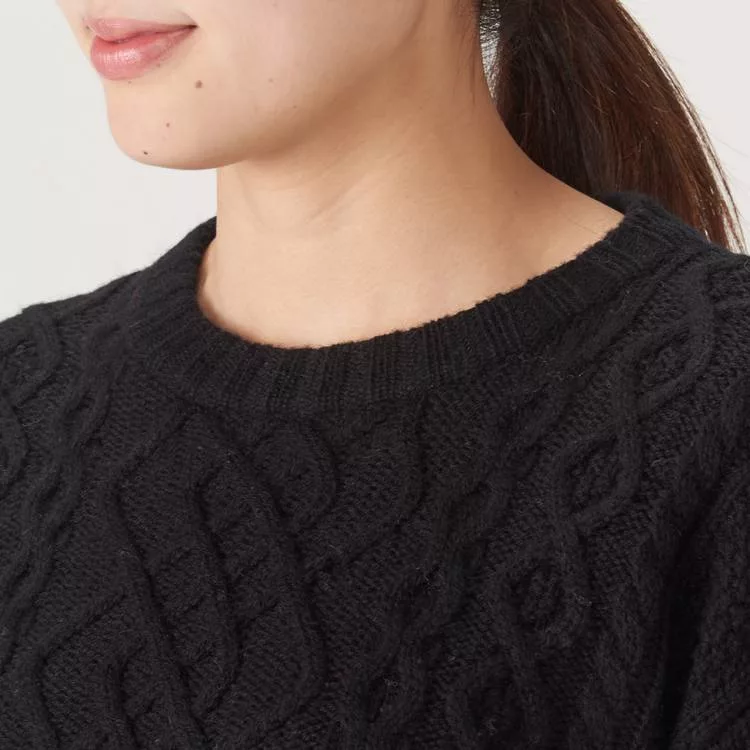 商品描述: [MUJI無印良品]女氂牛毛混羊毛織紋針織衫S黑色