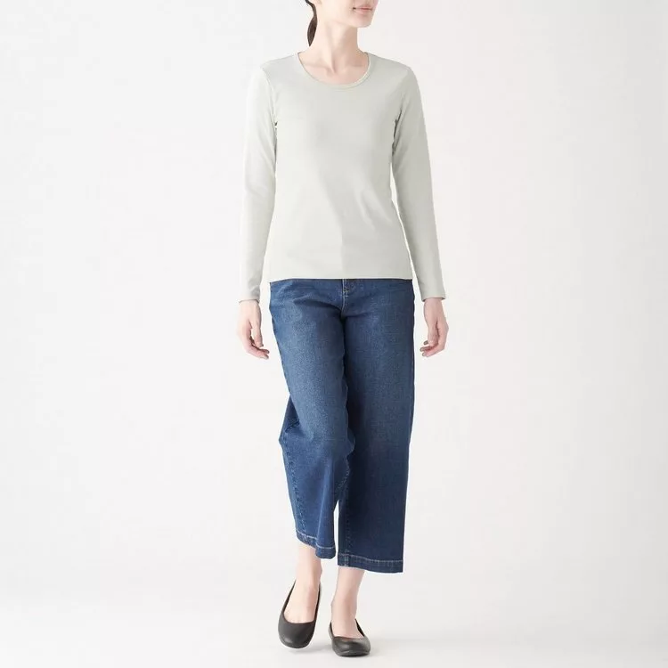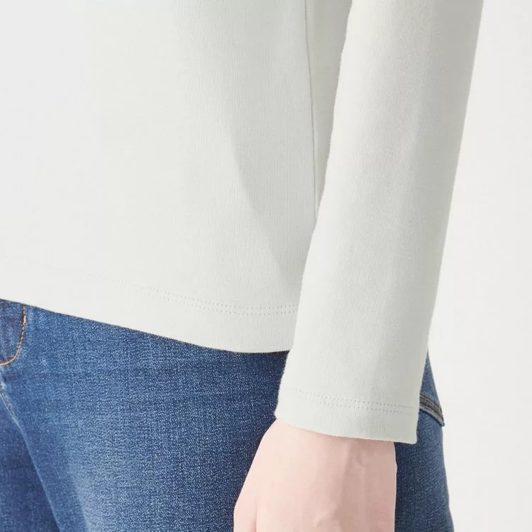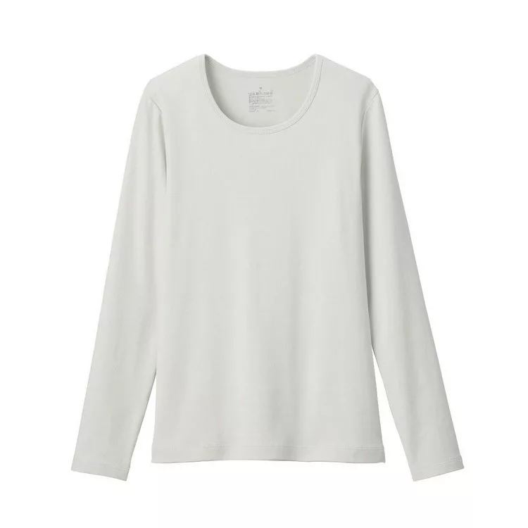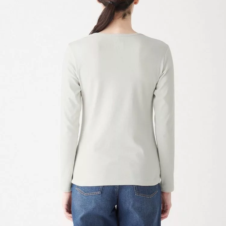商品說明: [MUJI無印良品]女有機棉混彈性針織圓領長袖T恤L灰銀