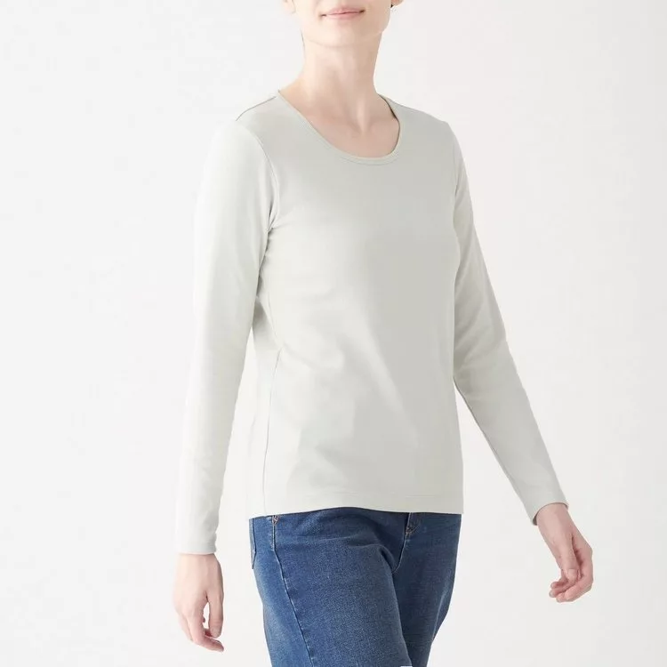 商品描述: [MUJI無印良品]女有機棉混彈性針織圓領長袖T恤L灰銀