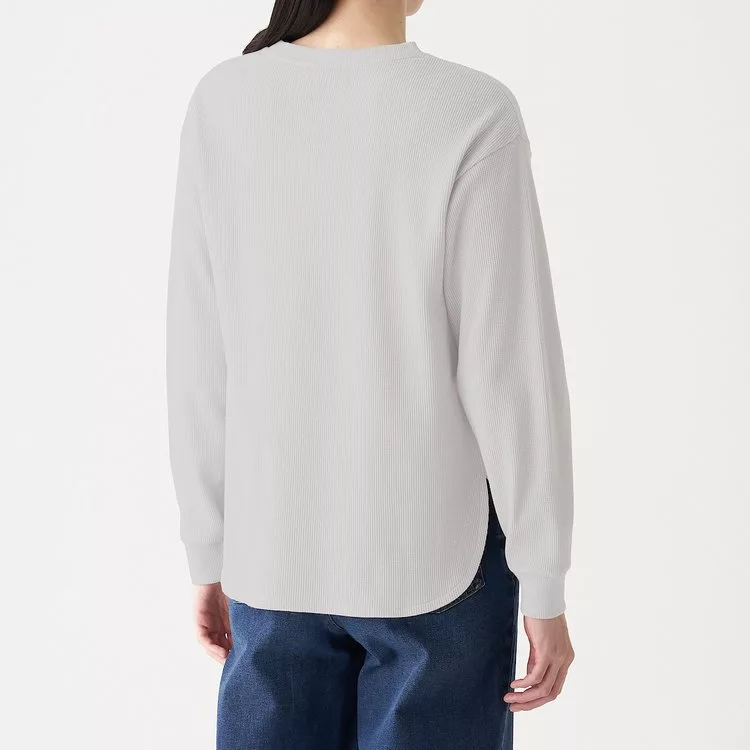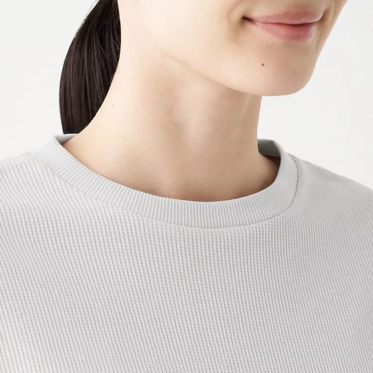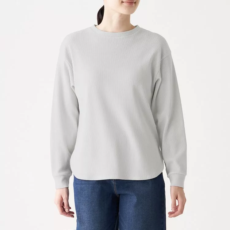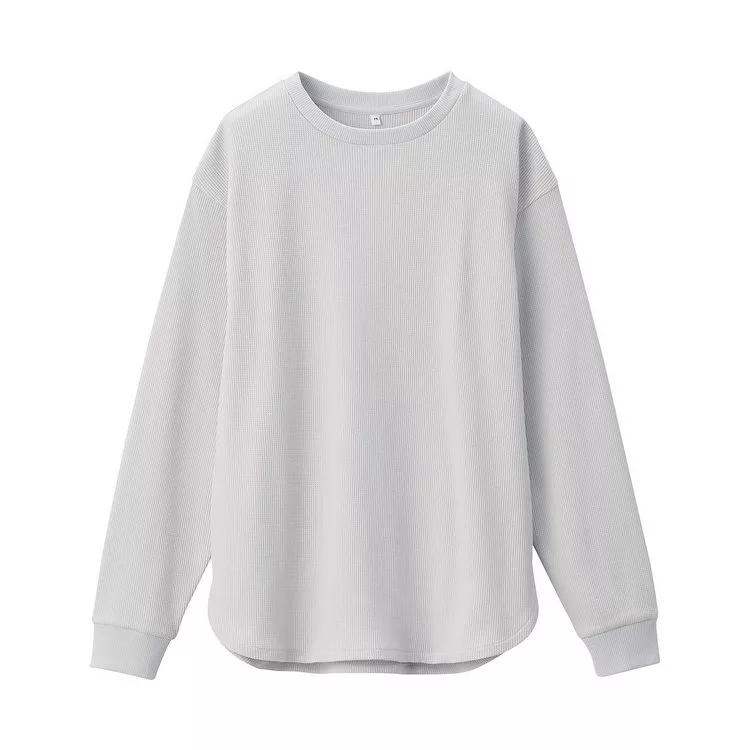 商品描述: [MUJI無印良品]女棉混迷你鬆餅紋圓領長袖T恤L灰銀