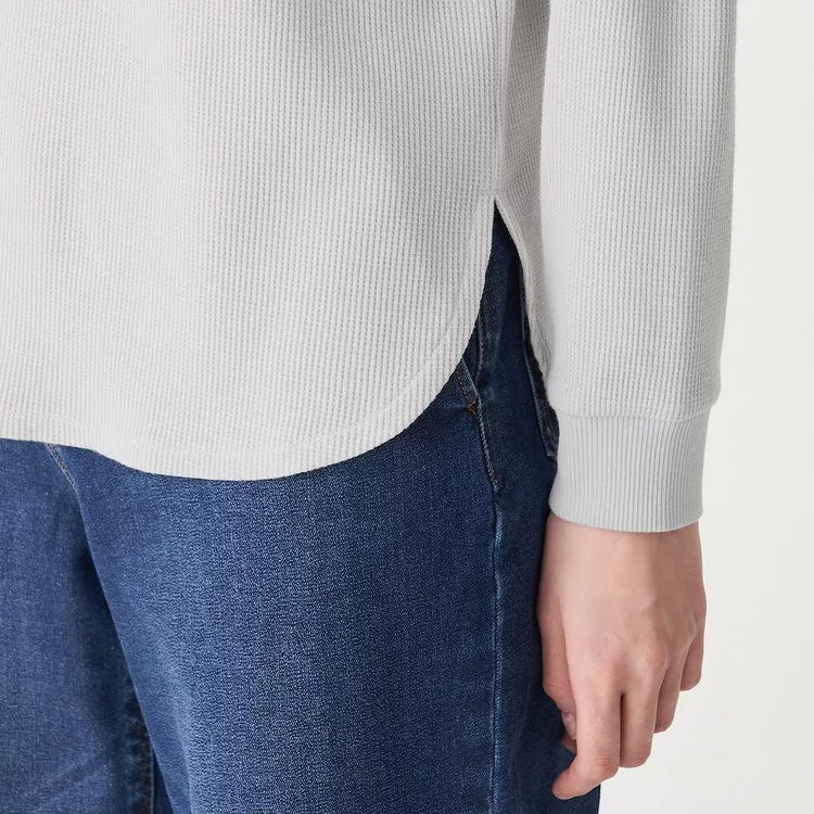 商品說明: [MUJI無印良品]女棉混迷你鬆餅紋圓領長袖T恤L灰銀