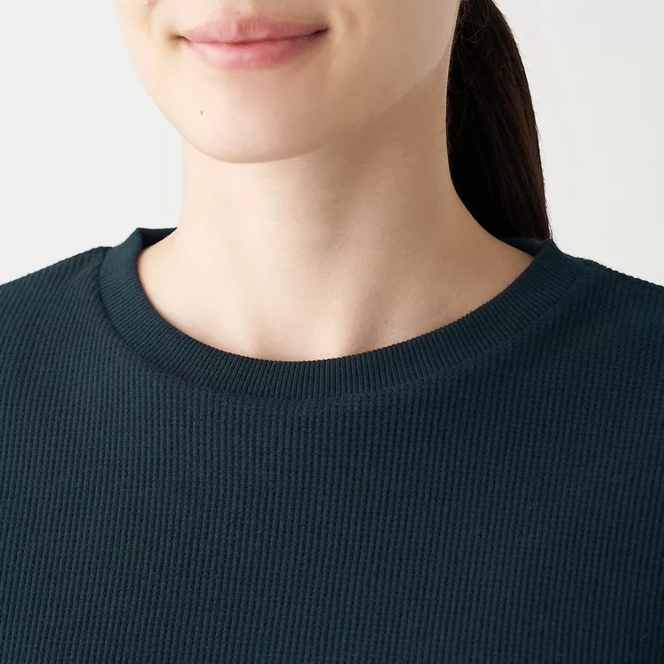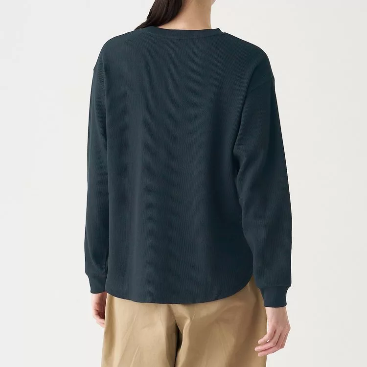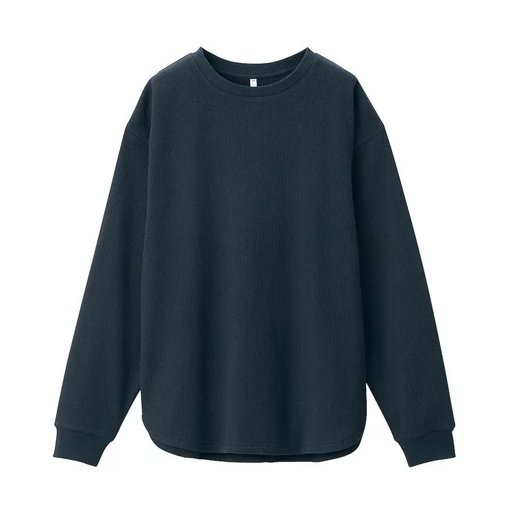 商品描述: [MUJI無印良品]女棉混迷你鬆餅紋圓領長袖T恤M黑色