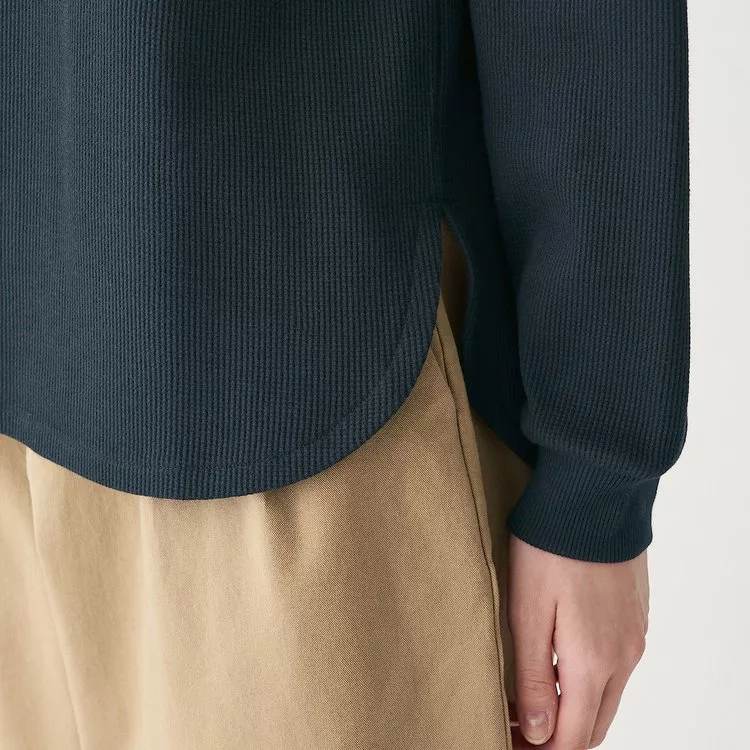 你在找博客來-[MUJI無印良品]女棉混迷你鬆餅紋圓領長袖T恤M黑色哪裡買嗎?