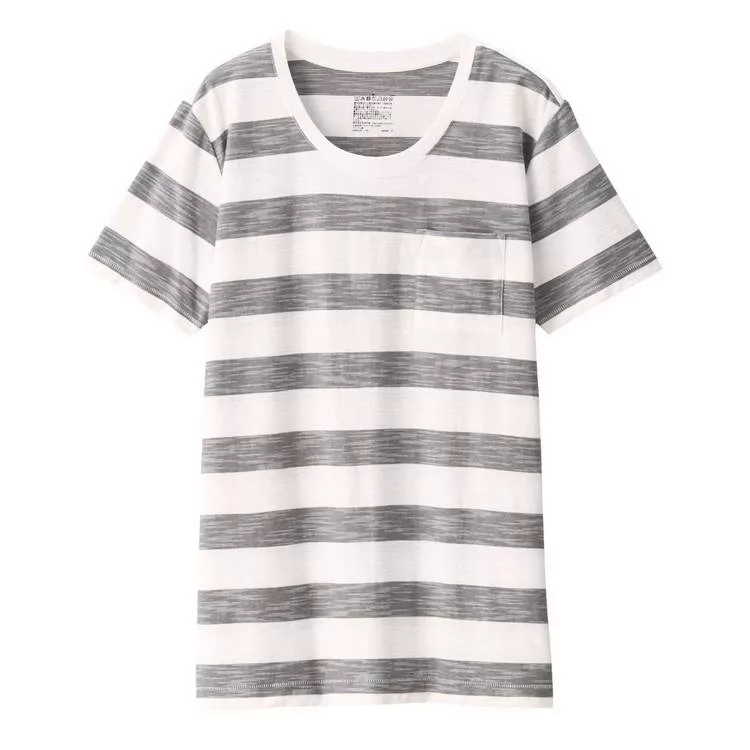 商品說明: [MUJI無印良品]女有機棉節紗天竺圓領橫紋短袖T恤S灰白紋樣