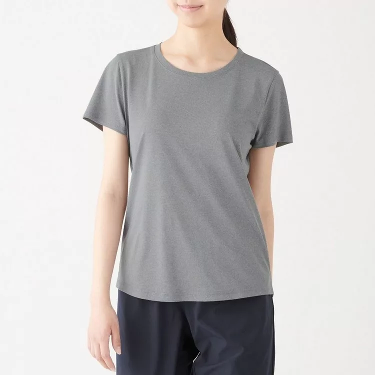 商品說明: [MUJI無印良品]女吸汗速乾聚酯纖維短袖T恤XL灰色