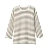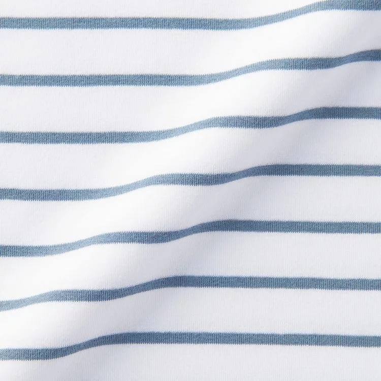 品名:女有機棉混彈性針織船領七分袖T恤煙燻藍橫紋XS