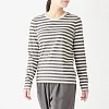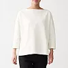商品說明: [MUJI無印良品]女有機棉混彈性針織船領七分袖T恤XS煙燻藍橫紋