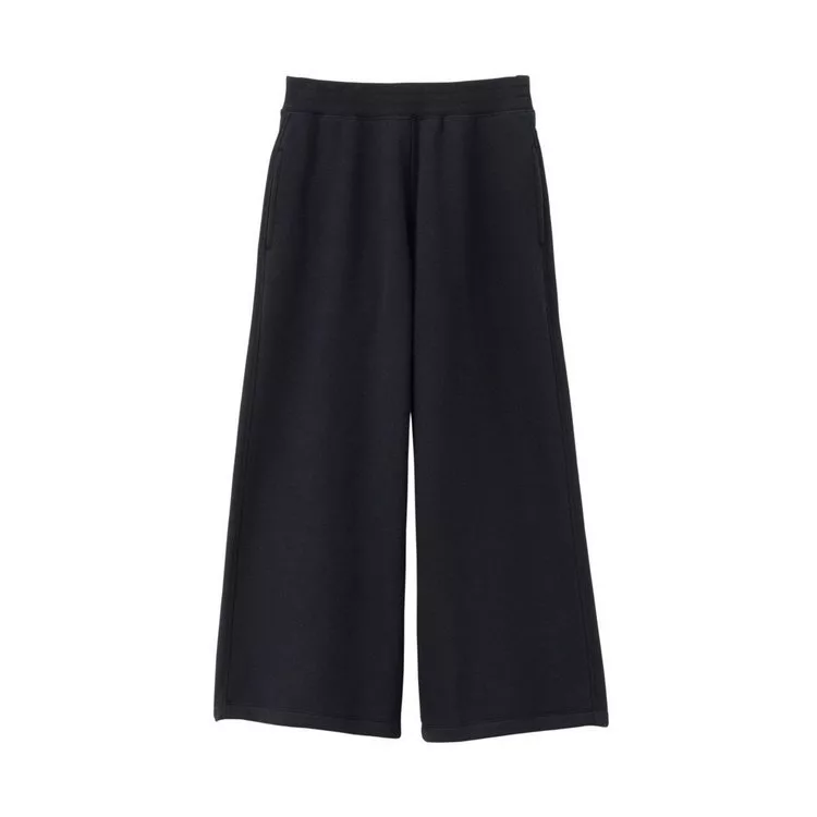 品名:女有機棉混彈性裏毛寬擺褲黑色M
