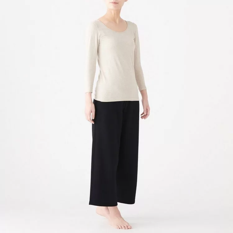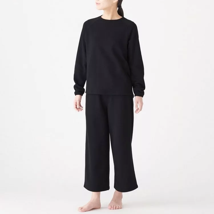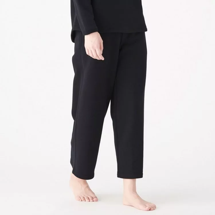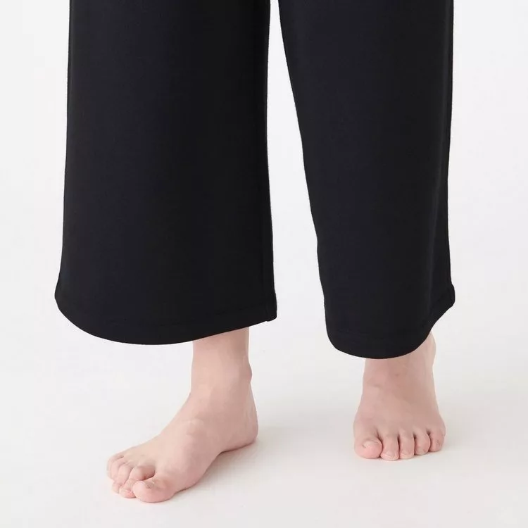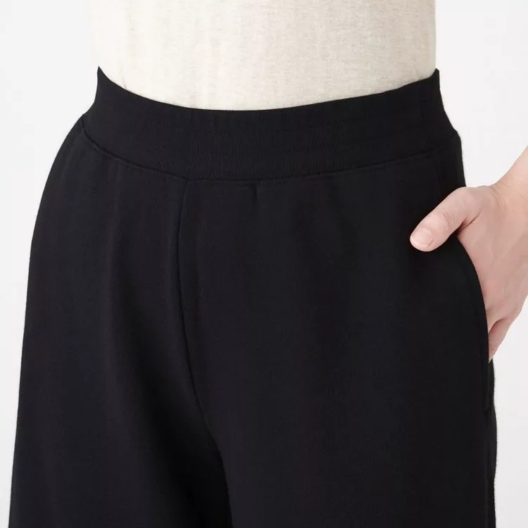 商品說明: [MUJI無印良品]女有機棉混彈性裏毛寬擺褲M黑色