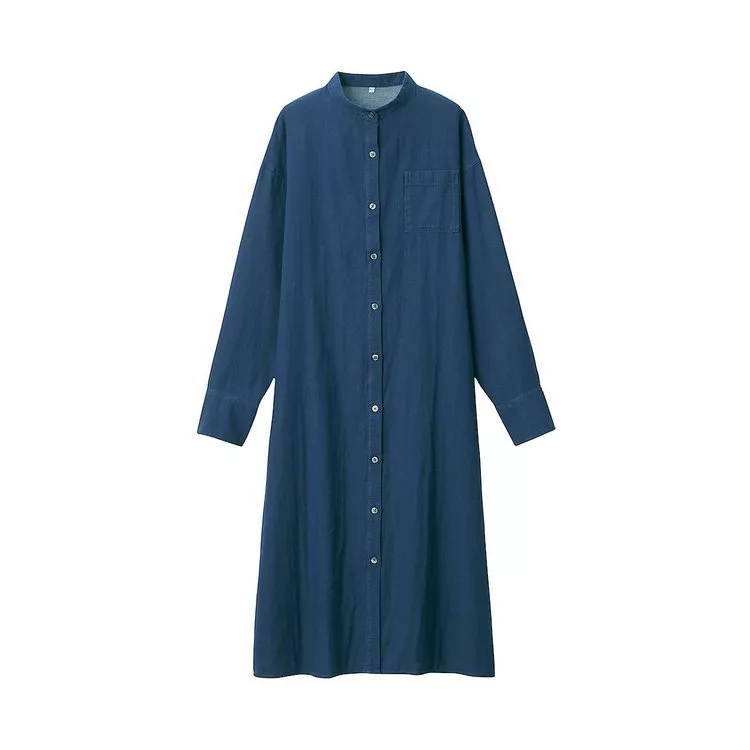 [MUJI無印良品]女印度棉丹寧立領洋裝M~L暗藍4