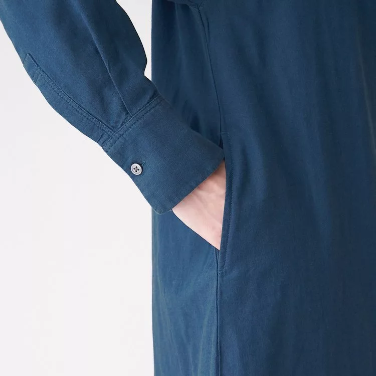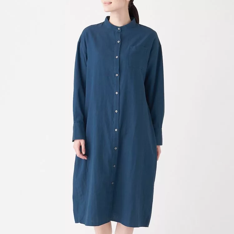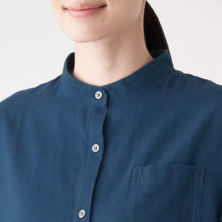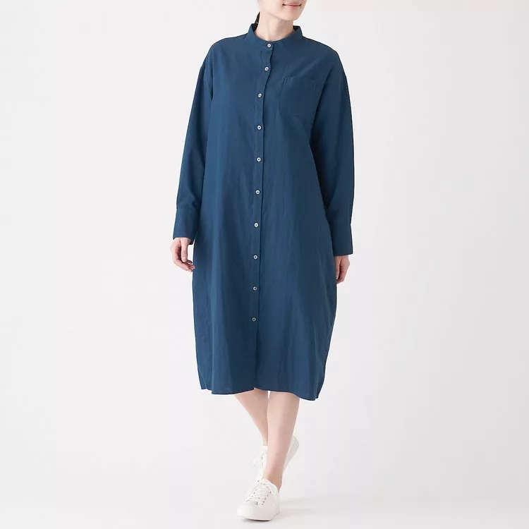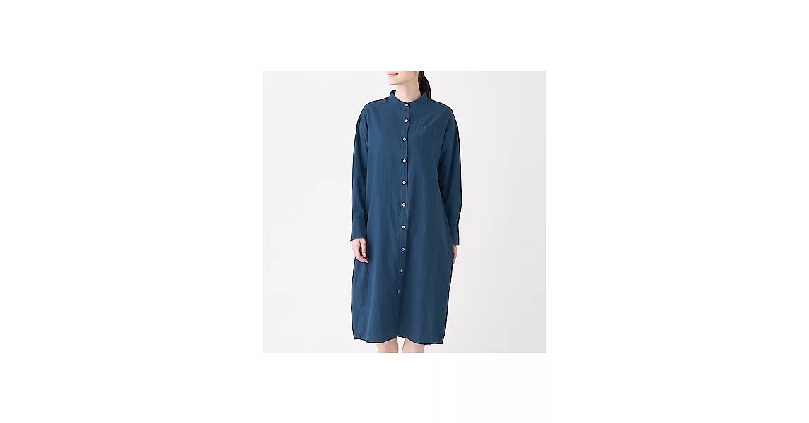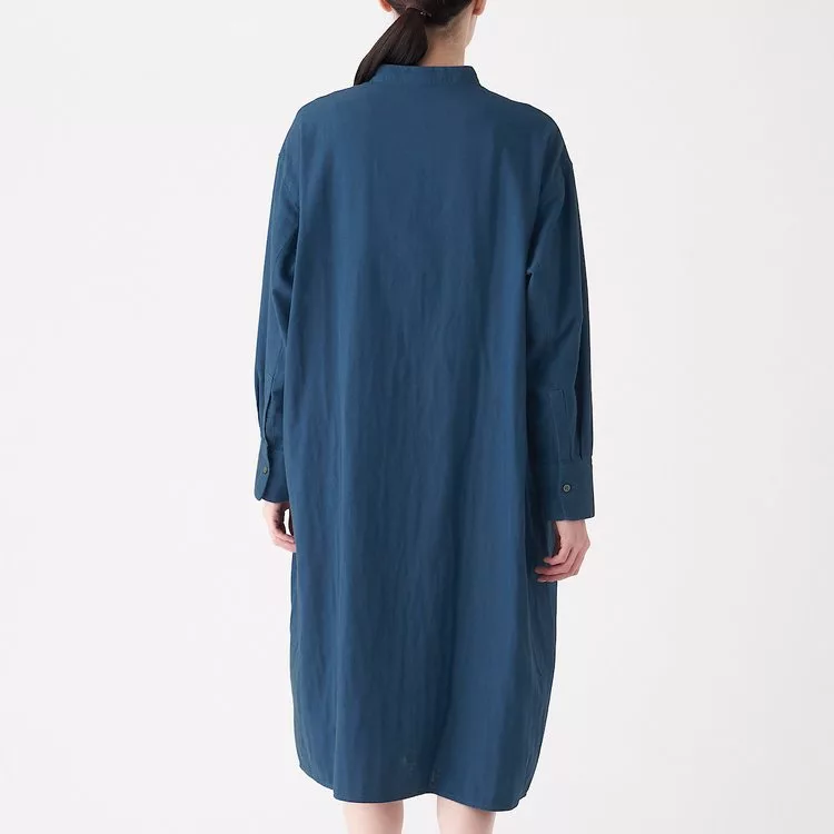 [MUJI無印良品]女印度棉藍染二重紗織立領洋裝XS~S深藍10